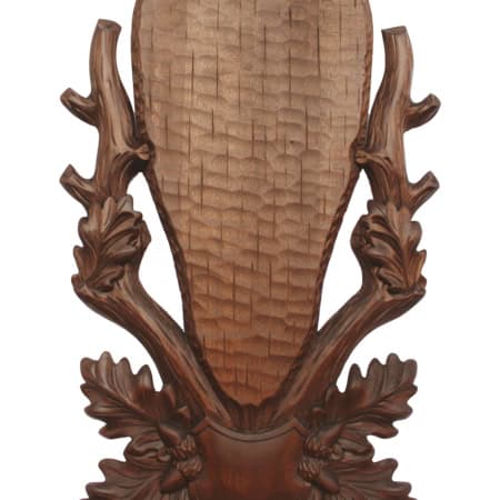 Podložka pod trofej – navržená a ručně vyřezaná z lipového dřeva, mořená vždy do jednotného odstínu (tmavá hněď) a navoskovaná anglickým voskem.