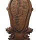 Podložka pod trofej – navržená a ručně vyřezaná z lipového dřeva, mořená vždy do jednotného odstínu (tmavá hněď) a navoskovaná anglickým voskem.