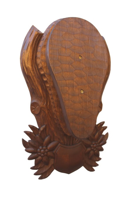 Podložka pod trofej – navržená a ručně vyřezaná z lipového dřeva, mořená vždy do jednotného odstínu (tmavá hněď) a navoskovaná anglickým voskem.