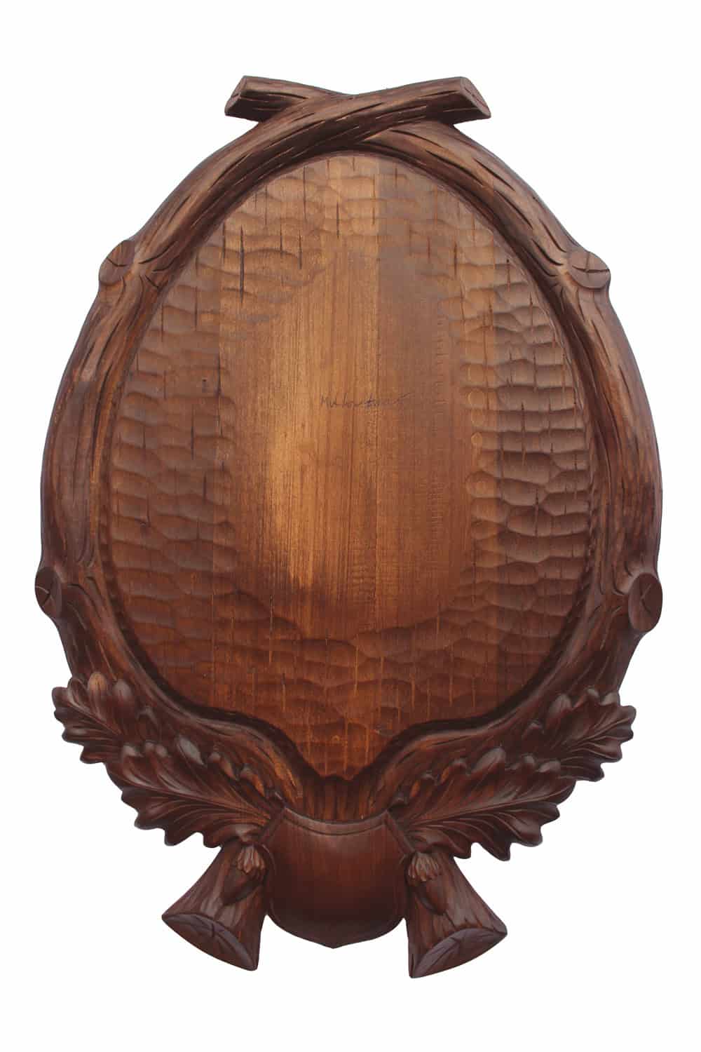 Podložka pod trofej mnou navržená a vyřezaná z lipového dřeva, mořená (hněď tmavá), navoskovaná anglickým voskem. Podložku pod preparát je nejlépe přizpůsobit přímo tvaru preparátu, (stačí zaslat jen v obálce složený obrys). Podložka bez povrchové úpravy je o 50 Kč levnější, při objednávce 5 a více kusů stejného druhu ušetříte 10% z ceny.